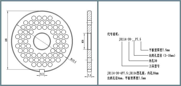 【應(yīng)用范圍】: 適用于JR114型用絞肉機(jī),及孔板外徑114mm的絞肉機(jī)